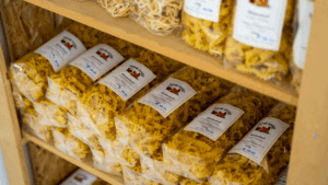 In unserem Hofladen finden Sie eine abwechslungsreiche Auswahl an frischen Lebensmitteln – direkt vom Hof und aus der Region. Besonders stolz sind wir auf unsere Freilandeier aus dem eigenen Mobilstall, die täglich frisch gelegt werden. In unseren Gewächshäusern reifen aromatische Tomaten und knackige Paprika, während auf den Feldern verschiedene Gemüse wie unsere Kartoffeln wachsen. Außerdem stellen wir mit viel Sorgfalt hausgemachte Nudeln in verschiedenen Formen und Sorten selbst her.