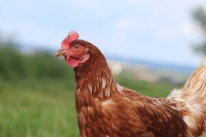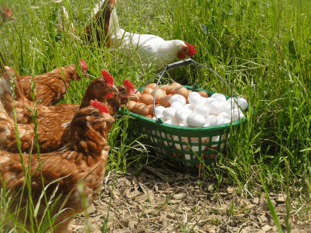 Unsere Freilandeier stammen von Hühnern, die in einem mobilen Hühnerstall direkt neben unserem Hof gehalten werden. Der Mobilstall ermöglicht es uns, den Tieren regelmäßig frisches Grün und neue Auslaufflächen zu bieten.