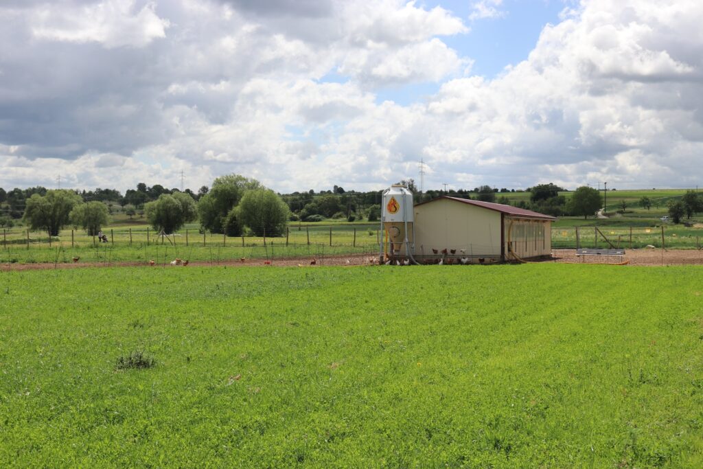 So haben unsere Hühner nicht nur viel Platz, sondern auch Abwechslung, frische Luft und Tageslicht. Der regelmäßige Standortwechsel wirkt sich zudem positiv auf die Bodenqualität und das Tierwohl aus.